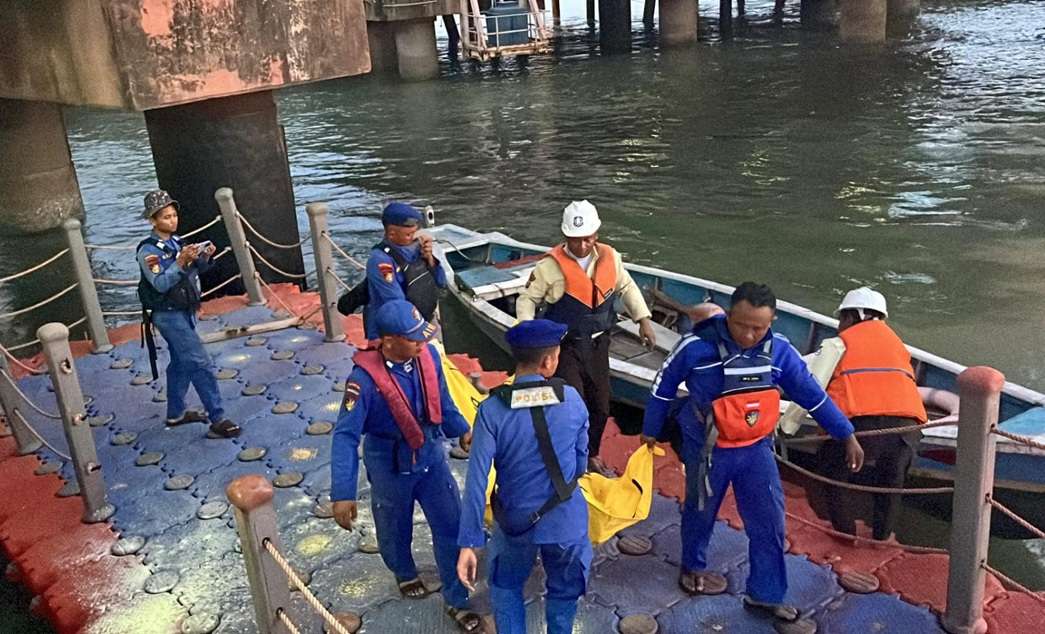 KABARKAN.ID I Gresik — Sesosok jasad lansia mengapung di bawah konstruksi dermaga Pelabuhan Petro Gresik, Selasa (31/3/2026). Penemuan ini berawal dari kecurigaan petugas keamanan, Sayid Muhamad, yang melihat benda mencurigakan di perairan dermaga.