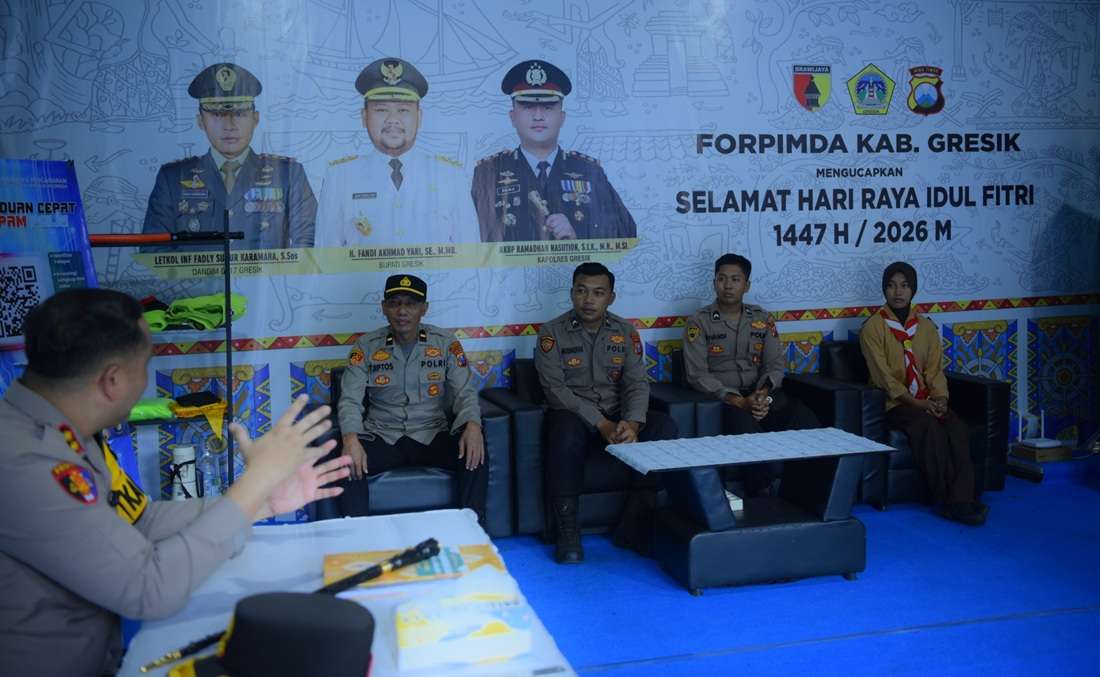 Kapolres melakukan pengecekan menyeluruh, mulai dari kesiapan fisik personel, kelengkapan peralatan operasional, hingga fasilitas pelayanan yang disiapkan bagi masyarakat maupun para pemudik yang melintas di kawasan pusat Kota Gresik.