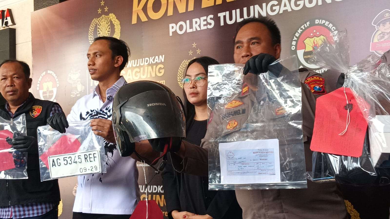 Dari penangkapan itu, polisi mengamankan sejumlah barang bukti berupa liontin emas seberat 3,1 gram, sepeda motor, dua pelat nomor kendaraan, helm hitam, serta sepasang sandal yang tertinggal di lokasi kejadian.